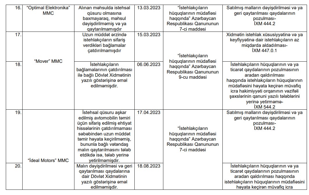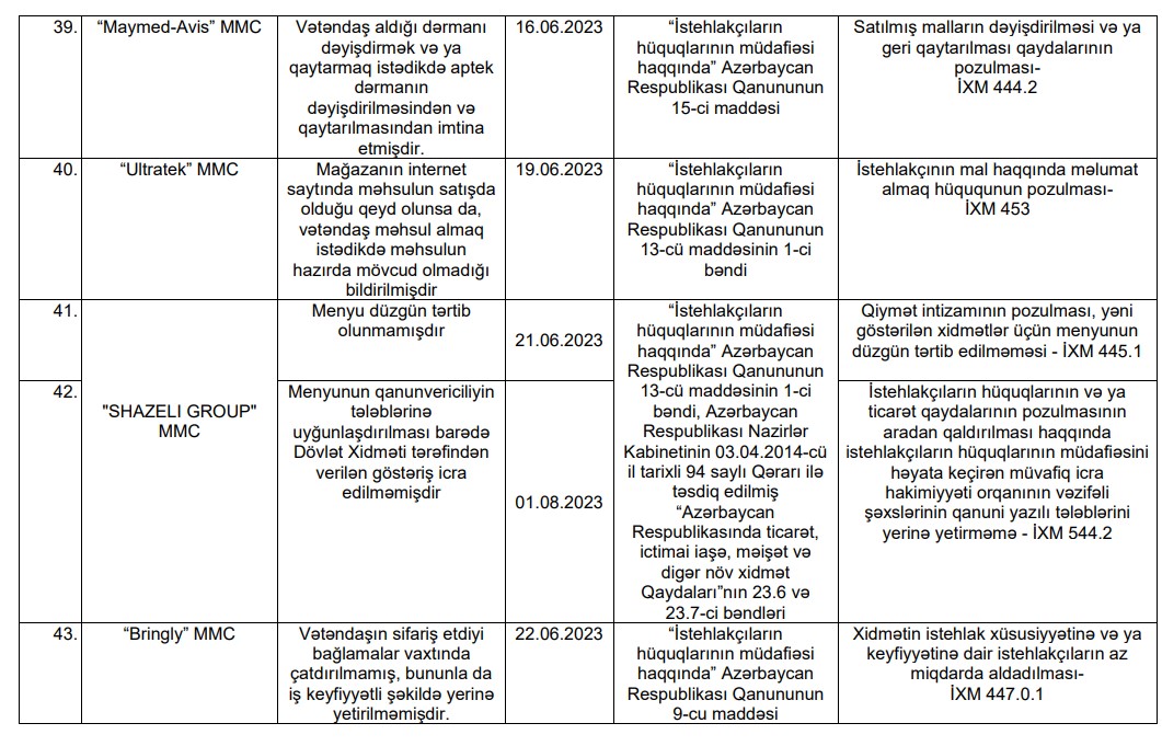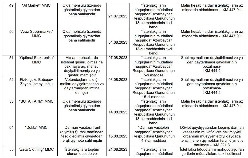 Dövlət Xidməti 50 şirkət və 14 sahibkar barəsində tədbir görüb, 447 min manat istehlakçılara geri qaytarılıb - SİYAHI
