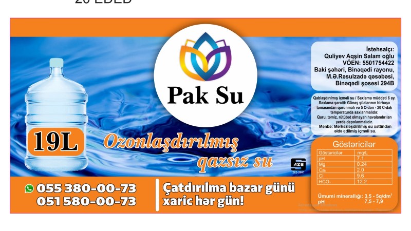 "Biz ticarət brendimizin adından qeyri-qanuni fəaliyyət göstərən şəxsi müəyyən edərək, qanuni tədbirlərin görülməsi üçün müraciət edəcəyik. Əhalini "Pak Su" məsulları alarkən diqqətli olmağa çağırıram, yalnız Quliyev Aqşin Salam oğlu tərəfindən istehsal olunan "Pak Su" qablaşdırılmış su məhsullarının düzgün olduğunu bildirirəm".