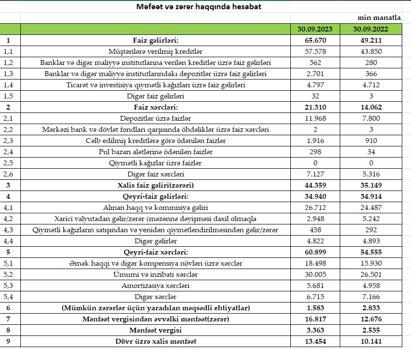 "Rabitəbank" ASC 2023-cü ilin 9 ayını (yanvar-sentyabr) 16 milyon 817 min manat xalis mənfəət ilə başa vurub. Bank ötən ilin eyni dövrünü 12 milyon 676 min manat xalis mənfəət ilə bağlamışdı. Beləliklə, 2023-cü ilin 9 ayında 2022-ci ilin 9 ayı ilə müqayisədə "Rabitəbank"ın xalis mənfəəti 4 milyon 141 min manat və ya 32,7% artıb. Qeyd edək ki, Bank 2021-ci ilin 9 ayını 6 milyon 625 min manat xalis mənfəət ilə başa vurmuşdu.