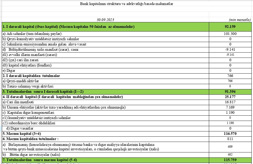 30 Sentyabr 2023-cü il tarixində "Rabitəbank" 115 milyon 759 min manat məcmu kapitala malik olub.
