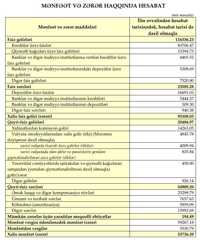 Müqayisə üçün qeyd edək ki, ötən ilin 9 ayında "Xalq Bank"ın əməliyyat mənfəəti 34 milyon 80 min manat təşkil etmiş, mənfəətdən ehtiyatlara 10 milyon 76 min manat ayrılmış və 4 milyon 79 min manat mənfəət vergisi ödənilmişdi.