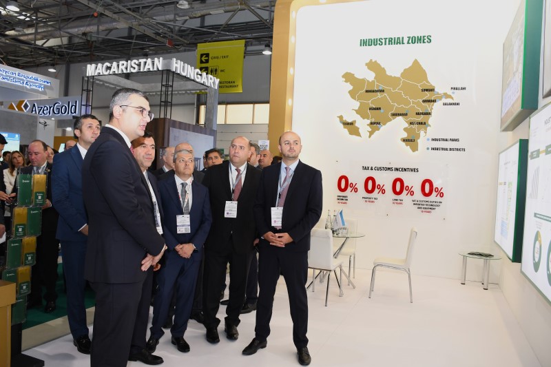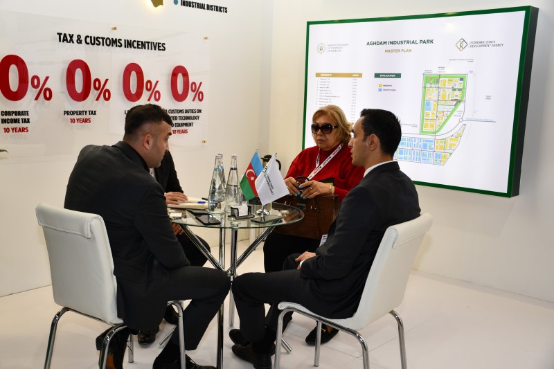 Maraqla qarşılanan stenddə sərgi iştirakçılarına ölkədə fəaliyyət göstərən sənaye parklarında sahibkarlar üçün mövcud investisiya imkanları, tətbiq olunan vergi və gömrük güzəştləri, Qarabağda yaradılan Ağdam və “Araz Vadisi İqtisadi Zonası” sənaye parklarının baş planları və hər iki sənaye parkında görülmüş işlər barədə məlumatlar verilir.