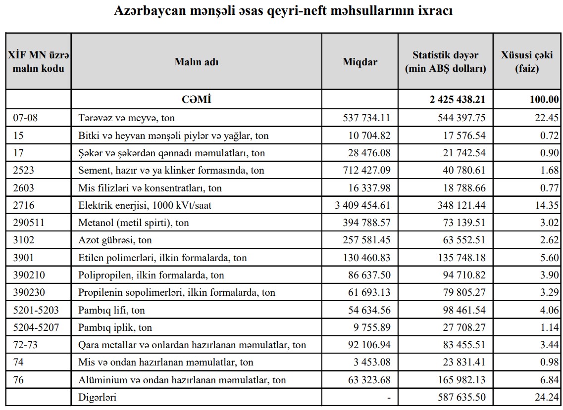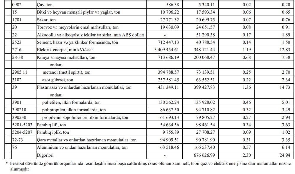 Azərbaycanın ən çox ixrac və idxal etdiyi mallar - SİYAHI