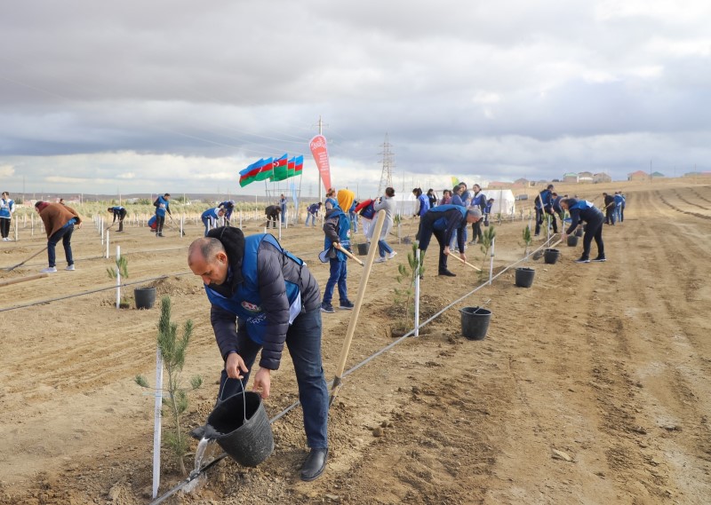 Bu tədbir çərçivəsində Mərkəzi Bankın əməkdaşları tərəfindən Müşfiqabad qəsəbəsində yerləşən ərazidə Abşeron yarımadasının torpaq-iqlim şəraitinə uyğun 500 Eldar şamı və zeytun ağacı əkilmişdir.