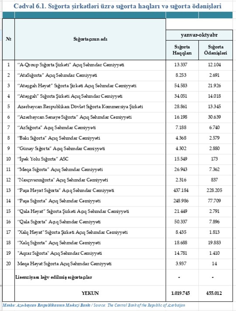Sığorta şirkətləri - haqlar və ödənişlər - SİYAHI