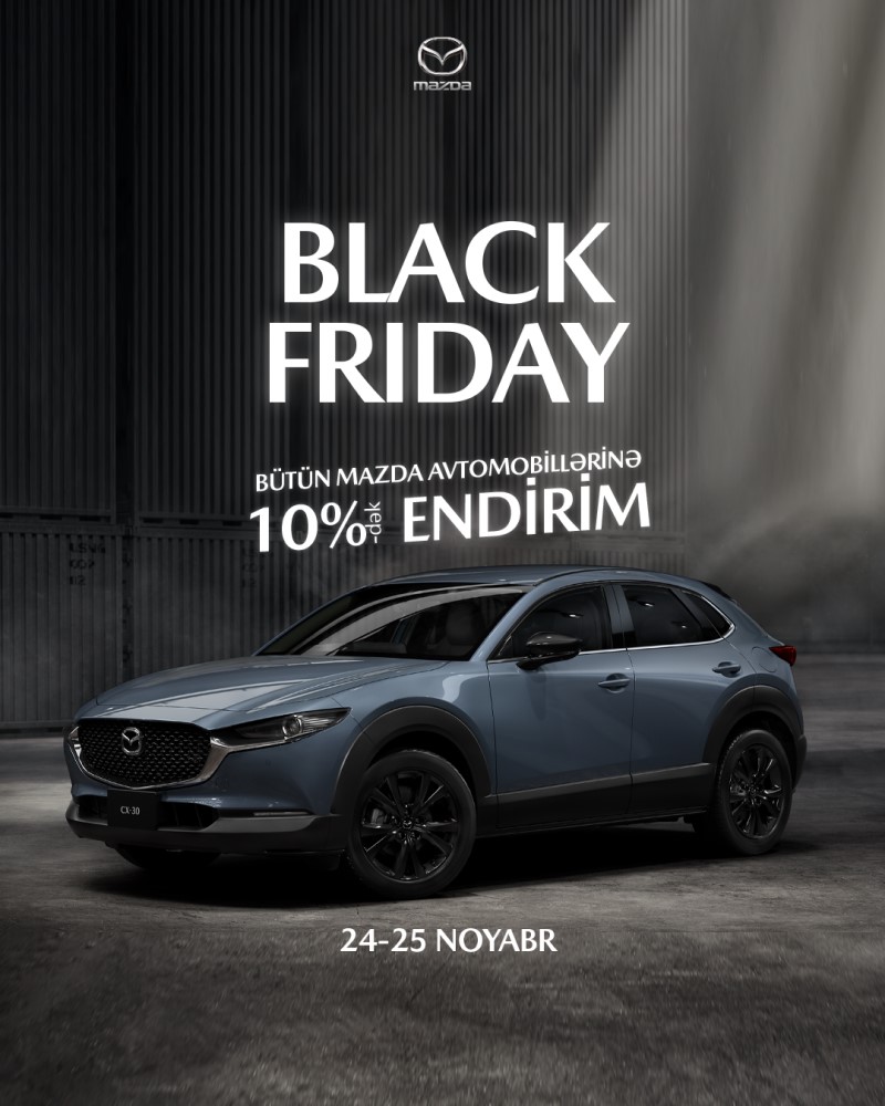 24-25 Noyabr tarixlərində bütün Mazda avtomobilləri 10%-ədək endirim ilə satılacaq.