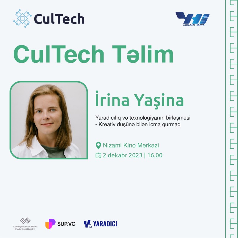 2 dekabr (16.00) - İrina Yaşina - Yaradıcılıq və texnologiyanın birləşməsi - Kreativ düşünə bilən icma qurmaq