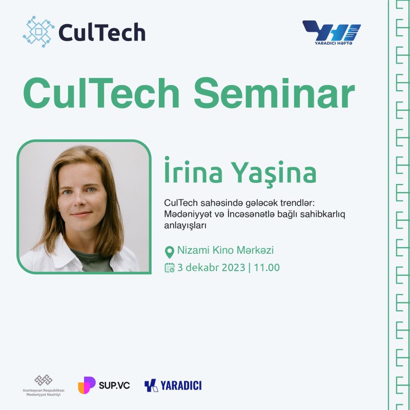 3 dekabr (11.00) - İrina Yaşina - CulTech sahəsində gələcək trendlər: Mədəniyyət və İncəsənətlə bağlı sahibkarlıq anlayışları