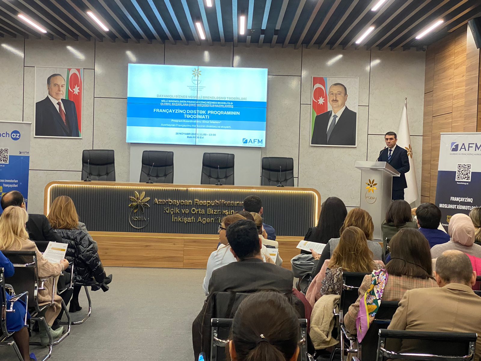 28 noyabr 2023-cü il tarixində Bakı KOB Evində baş tutan tədbirdə 50-yə yaxın sahibkara françayzinq biznes modelinin üstünlükləri və Françayzinq Dəstək Proqramı haqqında ətraflı məlumat verilib.