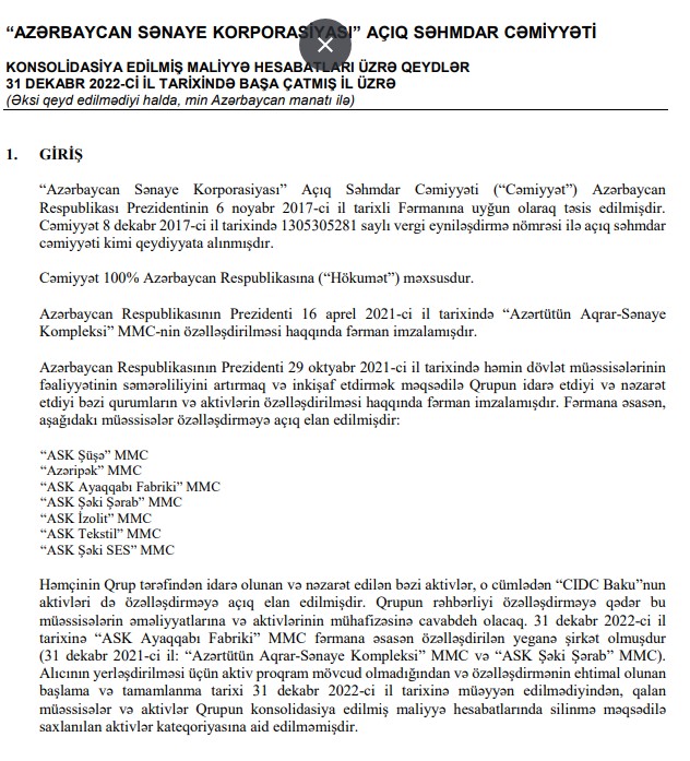 2022-ci ildə dövlətə məxsus "Azərbaycan Sənaye Korporasiyası" ASC-nin əməliyyat mənfəəti azalıb. Buna səbəb satışın maya dəyərinin bahalaşması, inzibati xərclərin artmasıdır.