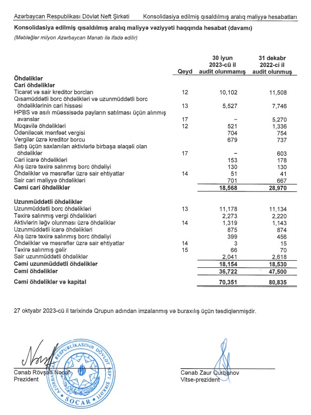 Qeyd edək ki, SOCAR 30 iyun 2023-cü il tarixində başa çatan altı ay üzrə Konsolidasiya edilmiş hesabatlarını dərc edib.