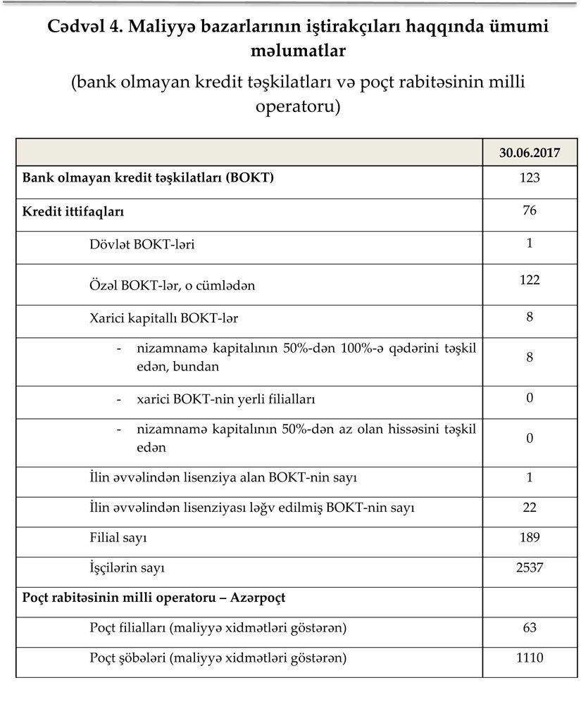 31 may 2017-ci il tarixinə sektorun balans kapitalı 2 milyard 758.8 milyon manat, əhalinin əmanətləri 6 milyard 820.1 milyon manat həcmində idi.
