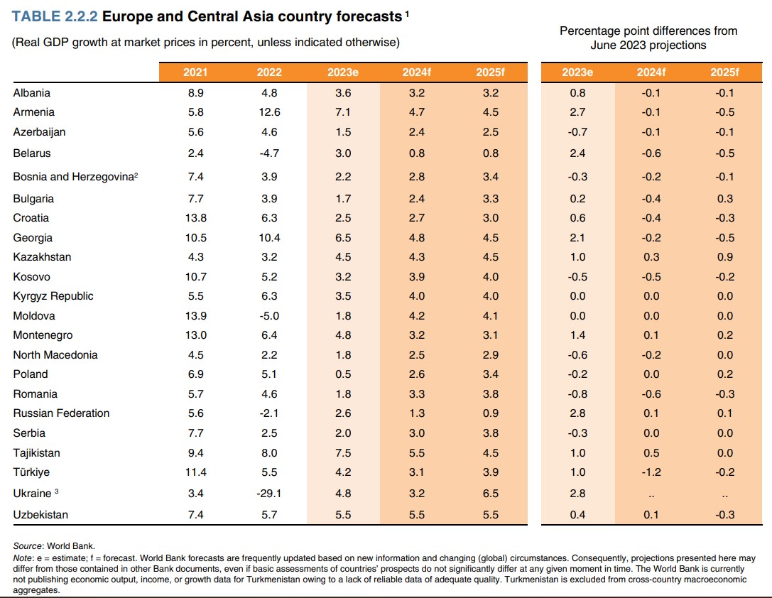 Dünya Bankı 2024-cü və 2025-ci illərdə Azərbaycanının iqtisadi artımı barədə proqnozları İyun 2023 proqnozları ilə müqayisədə 0,1 bənd azaldıb.