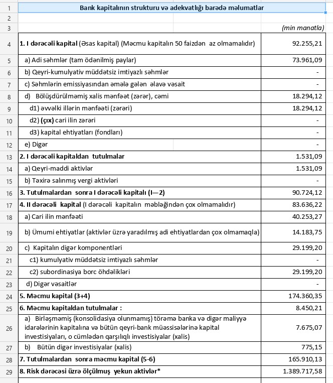 31 dekabr 2023-cü il tarixində "Bank Respublika" 165 milyon 910 min manat məcmu kapitala malik olub.