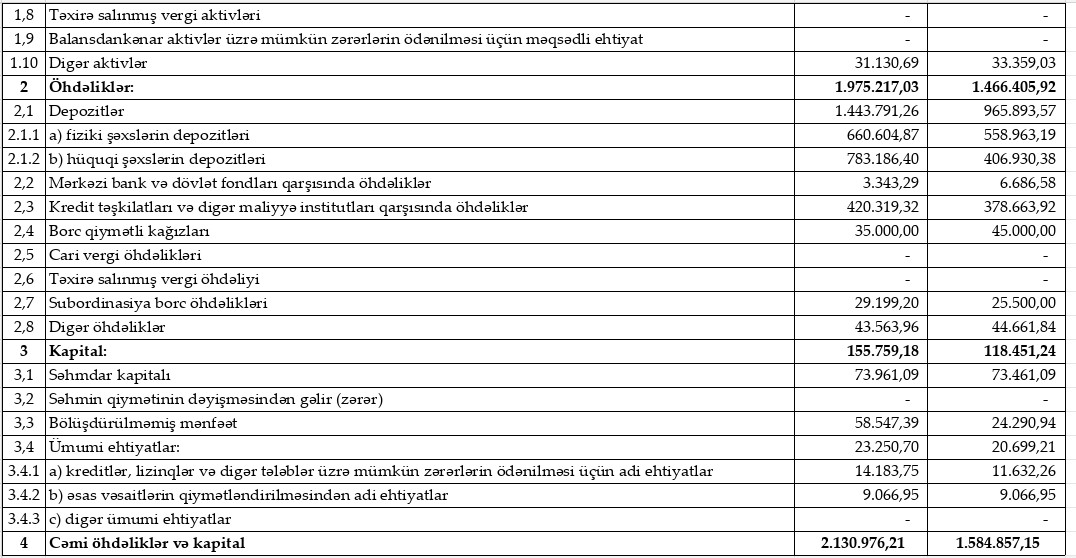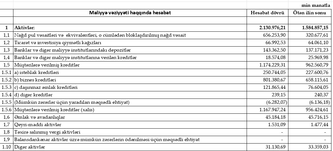 BANKIN AKTİVLƏRİ 2 MİLYARD MANAT SƏVİYYƏSİNİ DƏ KEÇİB