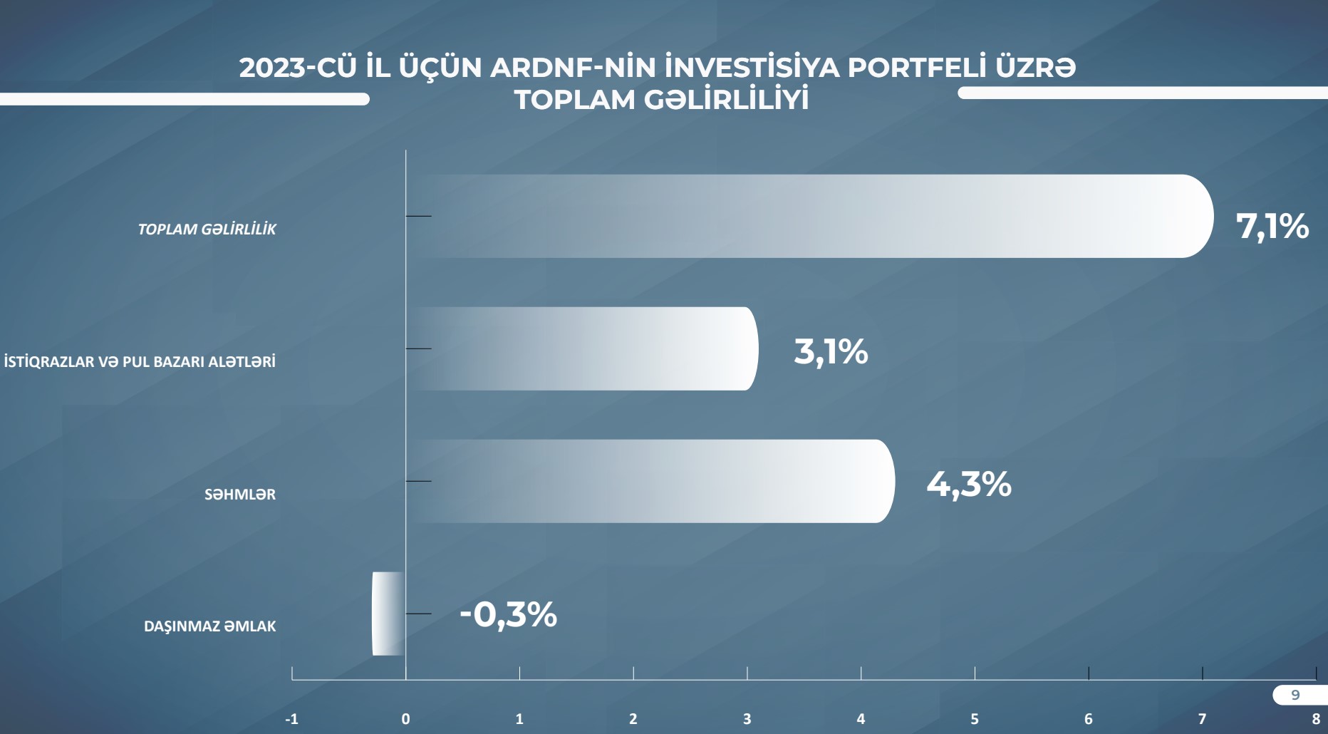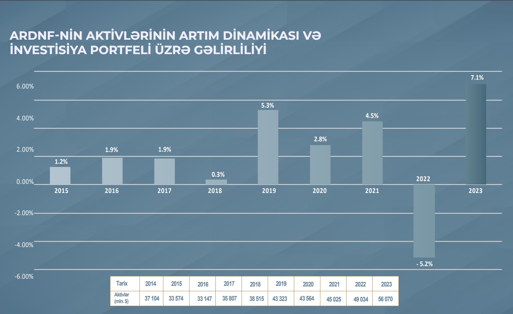 Azərbaycan Respublikası Dövlət Neft Fondu (ARDNF) 2023-cü il üzrə investisiya fəaliyyətinin yekunlarını açıqlayıb.