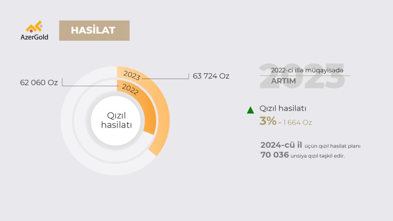 2024-cü il üçün qızıl hasilat planı isə 2023-cü illə müqayisədə 9% artaraq 70 min unsiya təşkil edir.