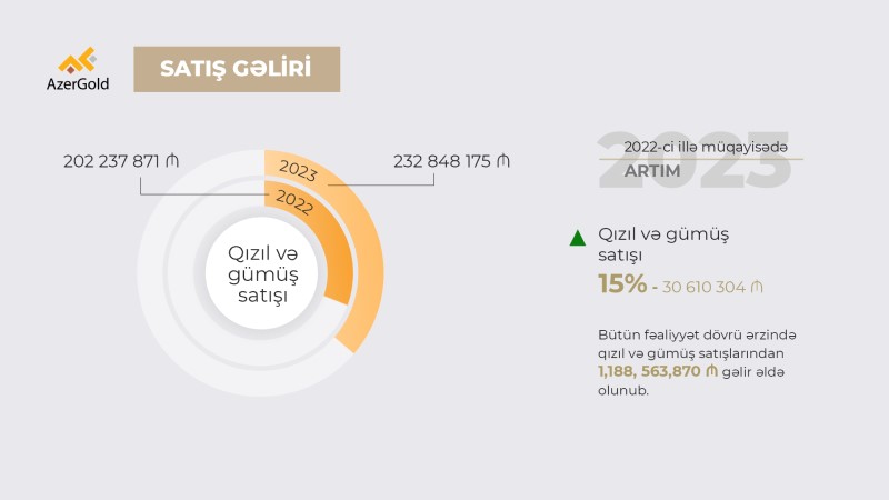 Bununla, 2017–2023-cü illər üzrə qızıl və gümüşün satışı nəticəsində əldə edilmiş ümumi gəlir 1.19 milyard manat olub.