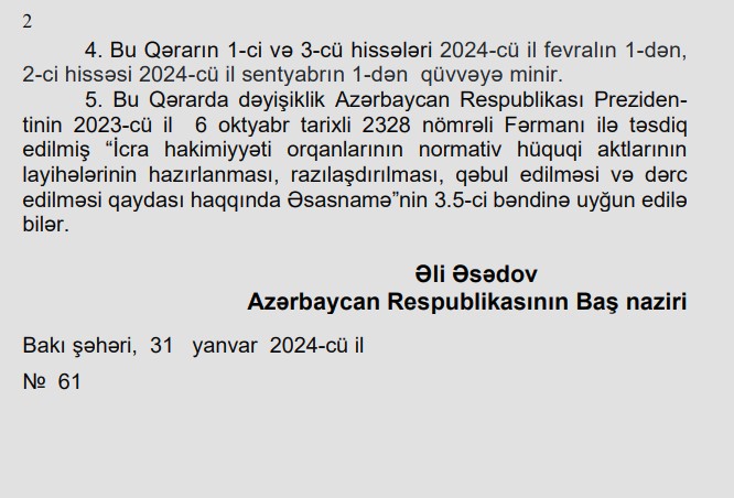 Marja-nınn xəbərinə görə, Nazirlər Kabineti bu barədə qərar verib.