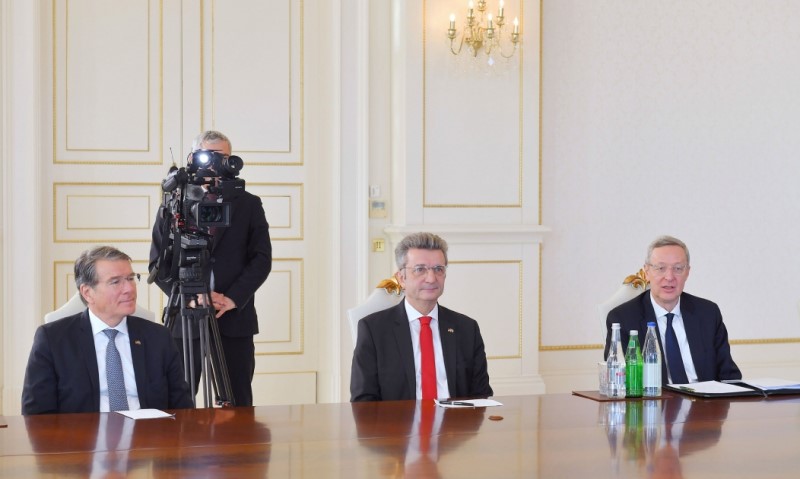 Almaniya Federativ Respublikasının aparıcı şirkətlərinin rəhbərlərindən ibarət nümayəndə heyətinə Almaniya-Azərbaycan Xarici Ticarət Palatasının icraçı direktoru Tobias Baumann, “Falk” konsaltinq şirkətinin icraçı direktoru Tomas Falk, “Uniper Global Commodities SE” şirkətinin birinci vitse-prezidenti Uve Fip, “Rhenus Group” beynəlxalq nəqliyyat şirkətinin layihələr üzrə idarə heyətinin direktoru Heinrix Kerstgens, “VNG” Səhmdar Cəmiyyətinin İdarə Heyətinin sədri Ulf Heitmüller, “Rohde & Schwarz” şirkətinin regional satış direktoru Viktoriya Gerasimova və “HHLA International” şirkətinin icraçı direktoru Filip Sveens daxildir.