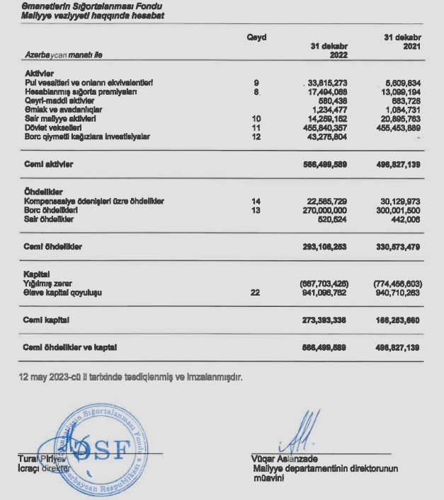 Əmanətlərin Sığortalanması Fondu 2021-ci və 2022-ci illər üzrə maliyyə hesabatlarını açıqlayıb.