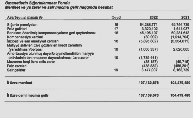 Marja.az xəbər verir ki, Fond 2022-ci ili 107 milyon 140 min manat mənfəət ilə başa vurub. Bu, 2021-ci illə müqayisədə 2 milyon 660 min manat və ya 2,5% çoxdur. Əmanətlərin Sığortalanması Fondu 2021-ci ili 104 milyon 479 min manat mənfəət ilə bağlamışdı.