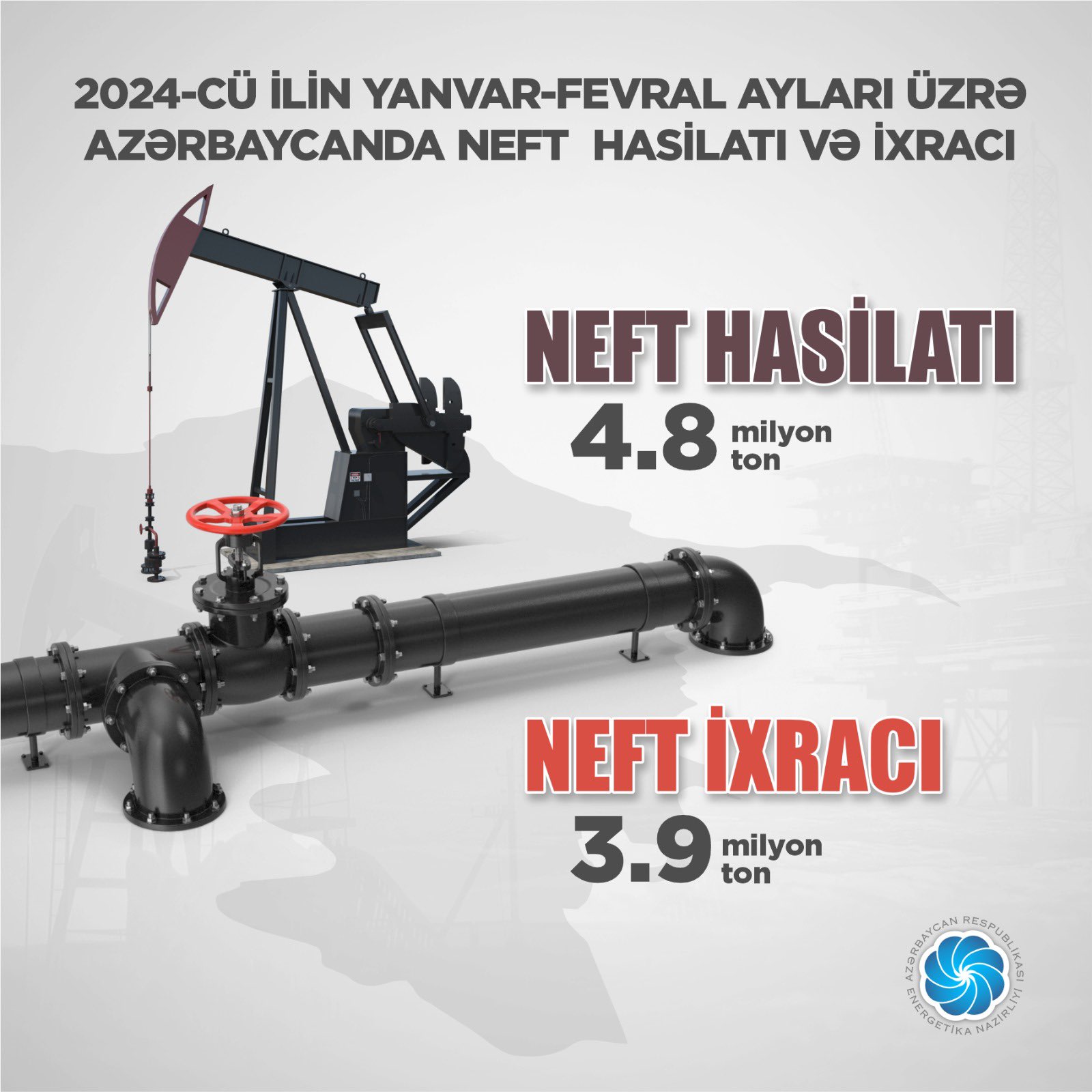 Bu ilin yanvar - fevral aylarında operativ məlumatlara əsasən, neft-kondensat hasilatı 4,8 mln. ton, ixraca nəql edilən həcmlər isə 3,9 mln. ton olub.