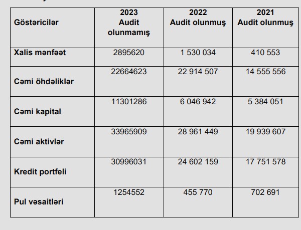 Bank Olmayan Kredit Təşkilatı (BOKT) “İnternational” ASC 2023-cü ili 2 milyon 896 min manat xalis mənfəət ilə başa vurub (audit olunmamış). BOKT 2022-ci ili 1 milyon 530 min manat xalis mənfəət ilə bağlamışdı. Beləliklə, BOKT “İnternational”ın xalis mənfəəti 2023-cü ildə 2022-ci illə müqayisədə 1 milyon 366 min manatk və ya 89,3% artıb.