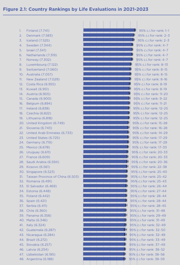Finlandiya bu il də lider mövqeyini qoruyub və “ən xoşbəxt ölkə” olub. Finlandiya ardıcıl 7-ci dəfə "dünyanın ən xoşbəxt ölkəsi" seçilib.