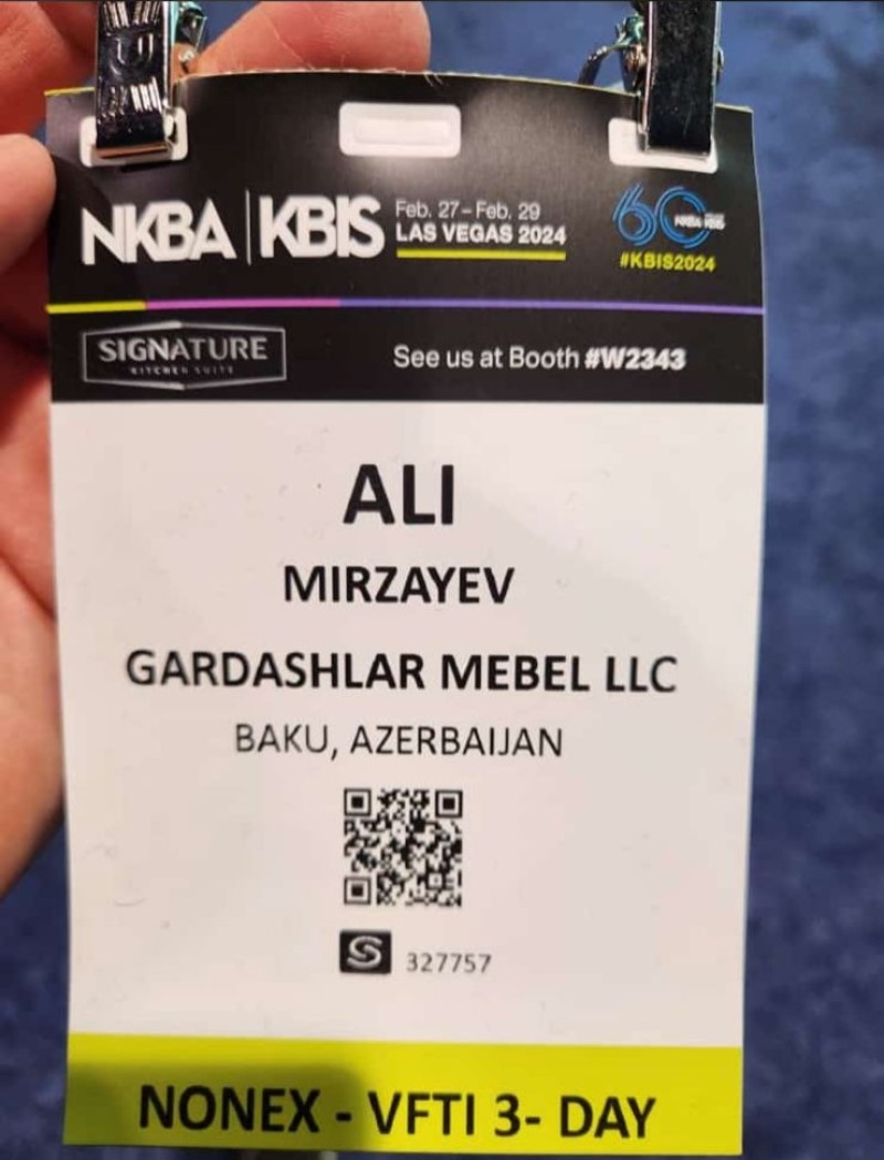 (®) “Qardaşlar Mebel” QSC-nin rəhbərliyindən ibarət nümayəndə heyəti, Əli Mirzəyev, Hüseyn Mirzəyev, həmçinin şirkətin Amerika Birləşmiş Ştatlarındakı nümayəndəsi Bəxtiyar Məmmədov, dünyanın ən tanınmış Mətbəx və Hamam Assosiyasının dəvəti ilə cari ilin 26-28 fevral tarixlərində ABŞ-nin Las Veqas şəhərində Mətbəx və Hamam Sənayesi Sərgisində (KBİS) iştirak ediblər.