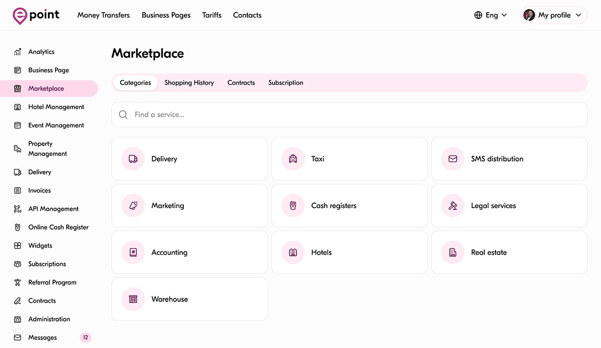 Epoint Inc. Sahibkarların bir-birlərinə xidmətlərini vahid platformada təklif etmələrinə kömək edəcək yeni məhsulumu - B2B Marketplace-i təqdim etməkdən məmnundur. Platforma bizneslərə öz xidmətlərini onlayn şəkildə tanıtmaq, eləcə də bizneslərini inkişaf etdirmək üçün digər sahibkarlardan xidmətlər almaq, unikal və tələb olunan təkliflər tapmaq imkanı verir.