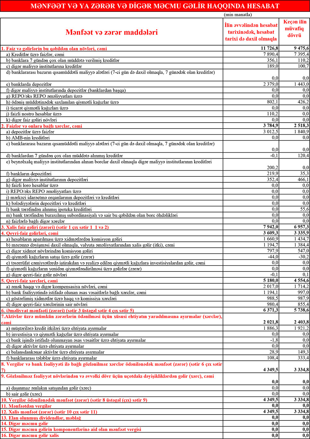 "Ziraat Bank Azərbaycan" ASC 2023-cü ilin 1-ci rübünü 3 milyon 334,8 min manat xalis mənfəət ilə bağlamışdı.