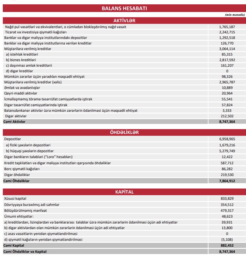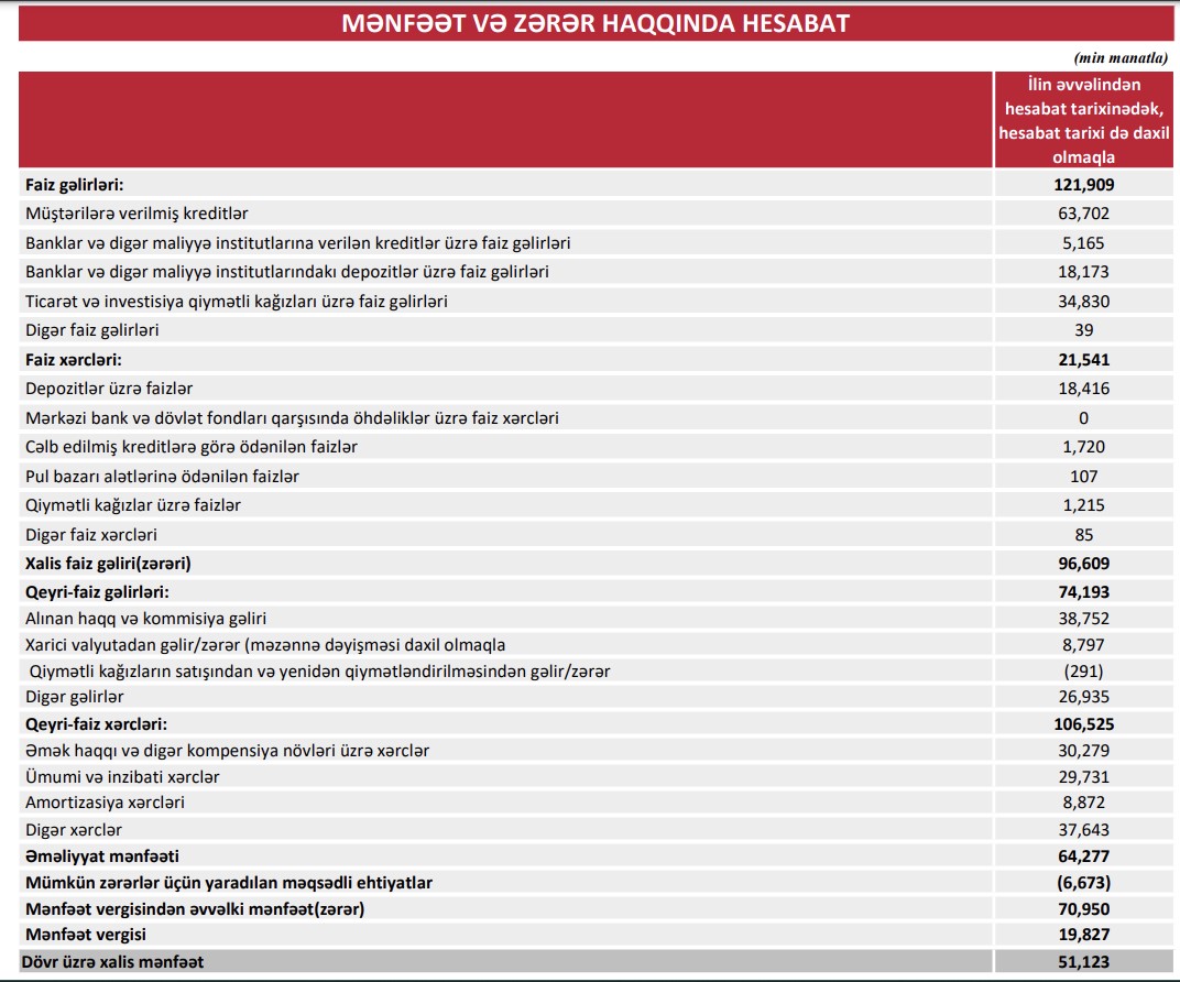 Bu barədə Marja.az Bankın maliyyə göstəricilərinə istinadən xəbər verir.