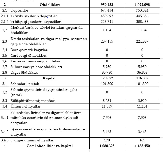 2024-cü ilin 1-ci rübündə müştəri depozitləri 24% artaraq 679 milyon 434 min manata çatıb. Belə ki, fiziki şəxslərin depozitləri 39% artaraq 450 milyon 693 min manat, hüquqi şəxslərin depozitləri isə 2% artaraq 228 milyon 741 min manat olub.