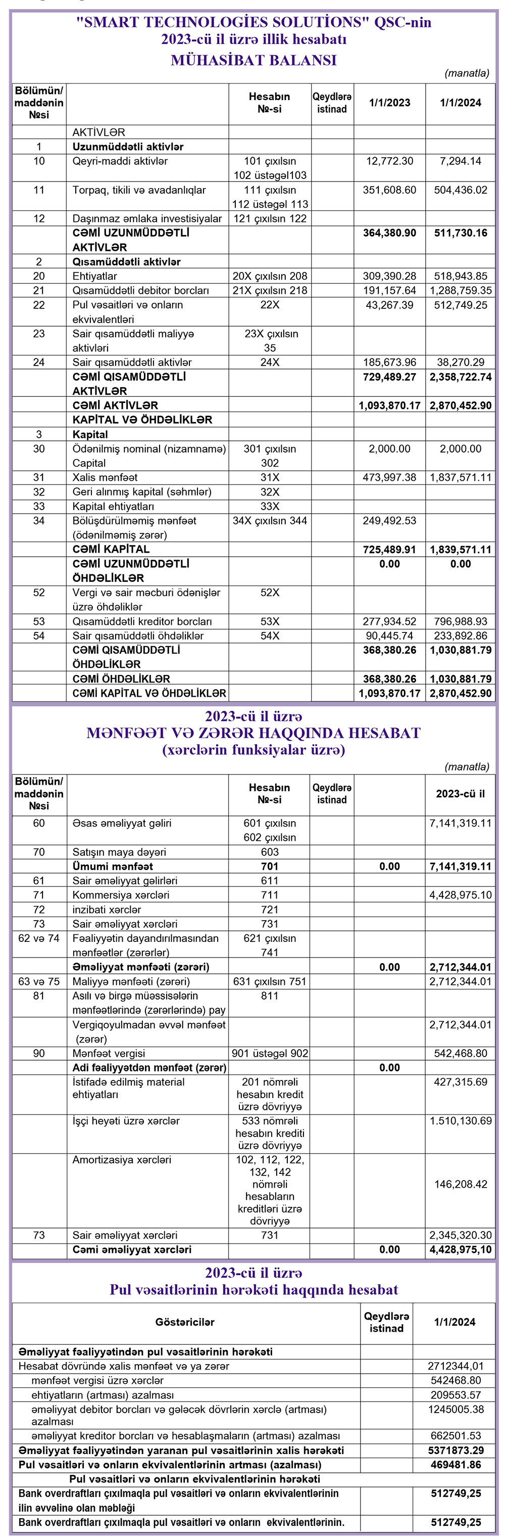 "Smart Technologies Solutions" QSC şirkəti 2023-cü ili 2 milyon 170 min manat xalis mənfəət ilə başa vurub.