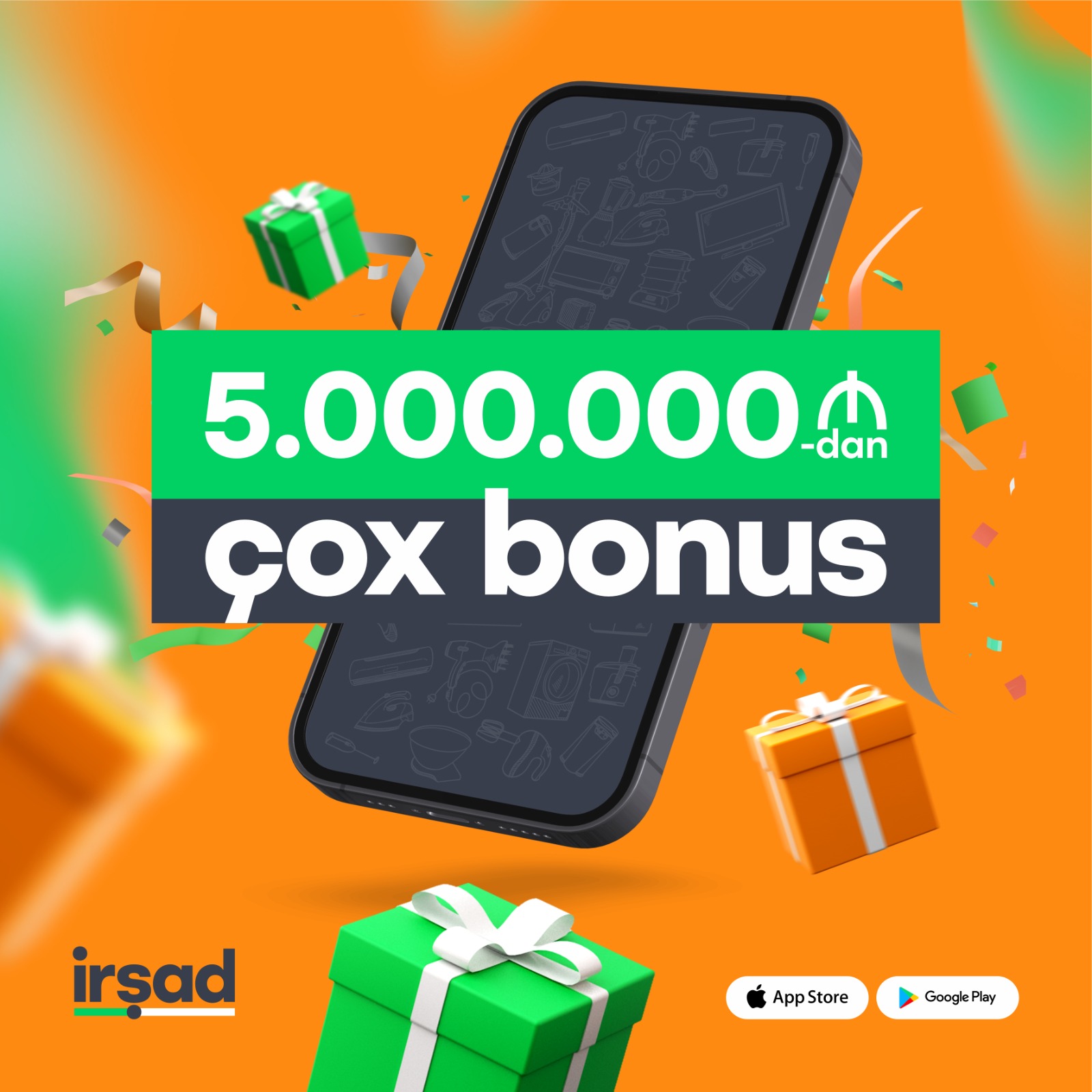 (®) Azərbaycanda telefon, elektronika və məişət texnikası satışı üzrə ixtisaslaşan, ən böyük mağazalar şəbəkəsindən olan İrşad-ın 2022-ci ildə təqdim etdiyi mobil tətbiq istifadəçilərinin qazandığı ümumi bonus məbləği 5.000.000 AZN-i keçib.