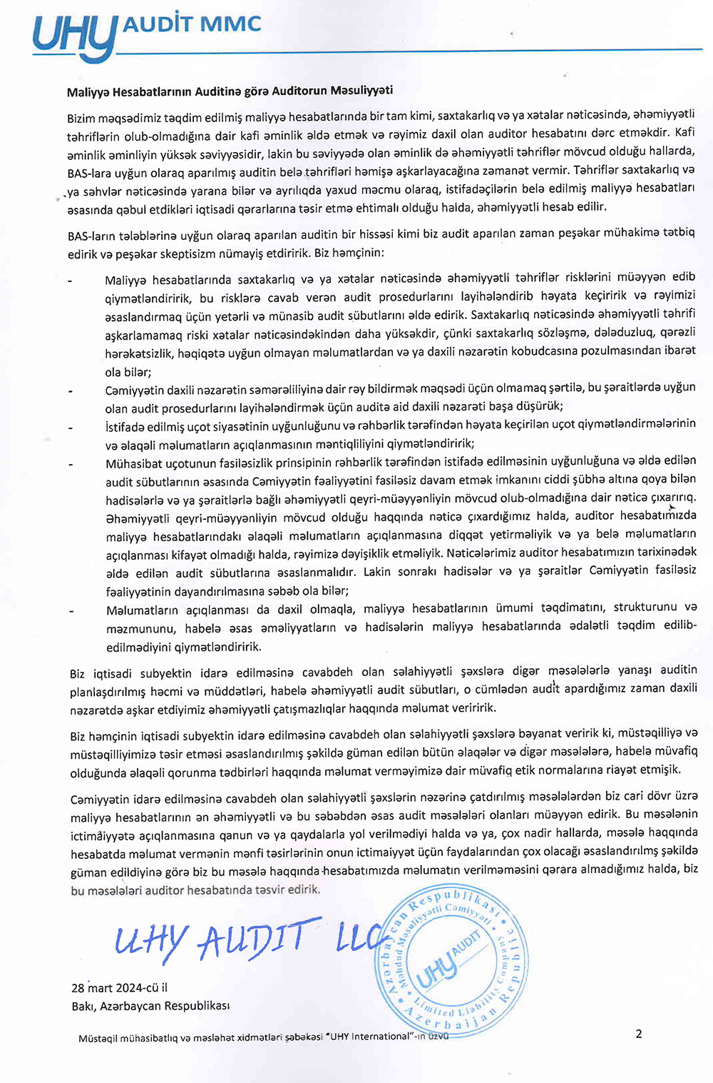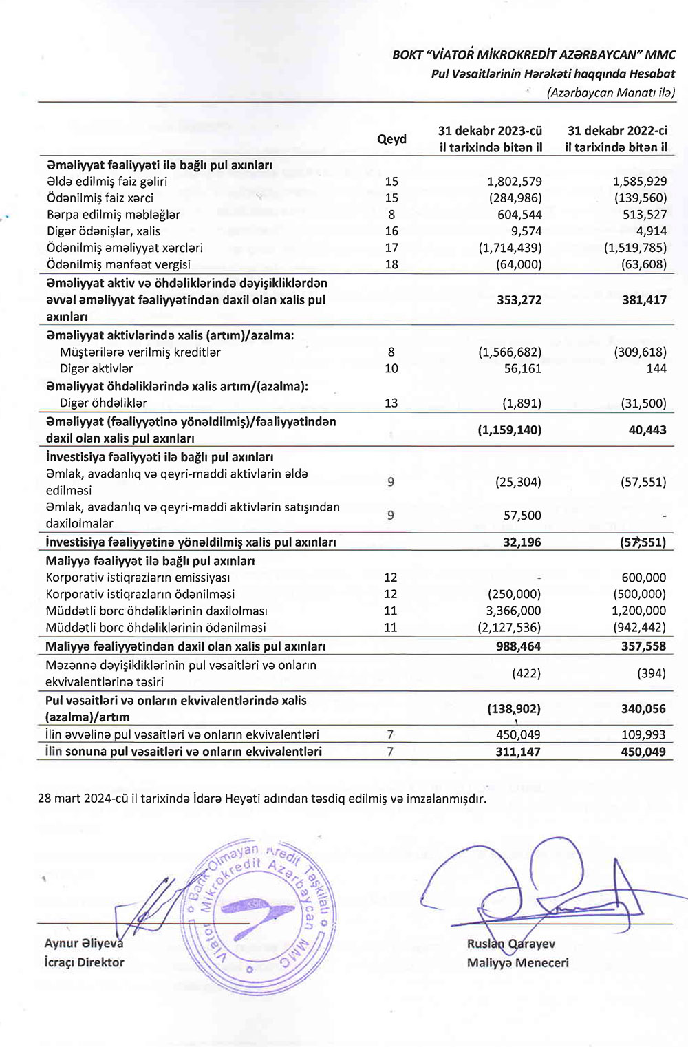 BOKT "Viator Mikrokredit Azərbaycan" MMC-nin 2023-ci ilin sonuna olan maliyyə və audit hesabatı ilə aşağıda və ya buradan daha ətraflı tanış ola bilərsiniz.