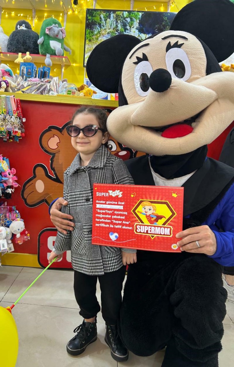 Xüsusi günlərə diqqətlə yanaşan SuperToys ötən gün 12 May Analar Gününə özəl layihə keçirdi. Övladları ilə mağazalarımıza gələn analara bu gündən xatirə qalacaq “Super Ana” sertifikatı verilib. Sertifikata balacanın və ananın barmaq izləri yerləşdirilib. Həmçinin, Super Analarımız “SuperMom” yazılı yaxalıq ilə də təltif olunublar.