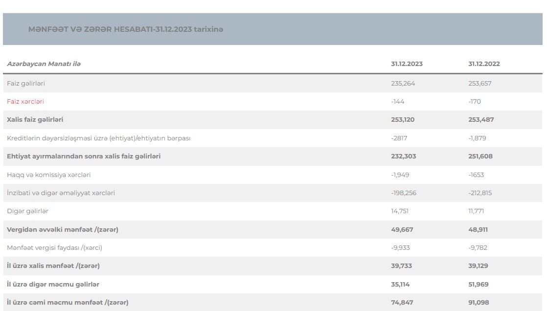 “Qafqaz-Kredit”in faiz gəlirləri və xalis mənfəəti azalıb