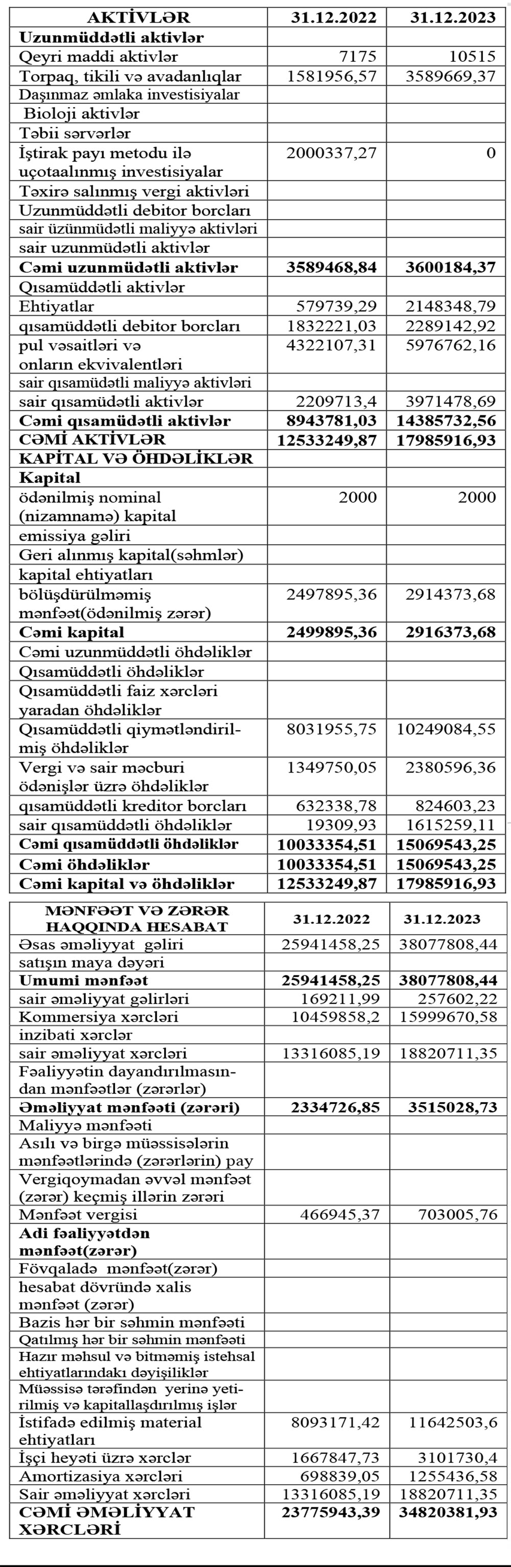 31 dekabr 2023-cü il tarixində "Azİnvest İnşaat" QSC 17 milyon 986 min manat cəmi aktivlərə malik olub. Şirkət 2022-ci ilin sonunda 12 milyon 533 min manat cəmi aktivlərə malik idi.