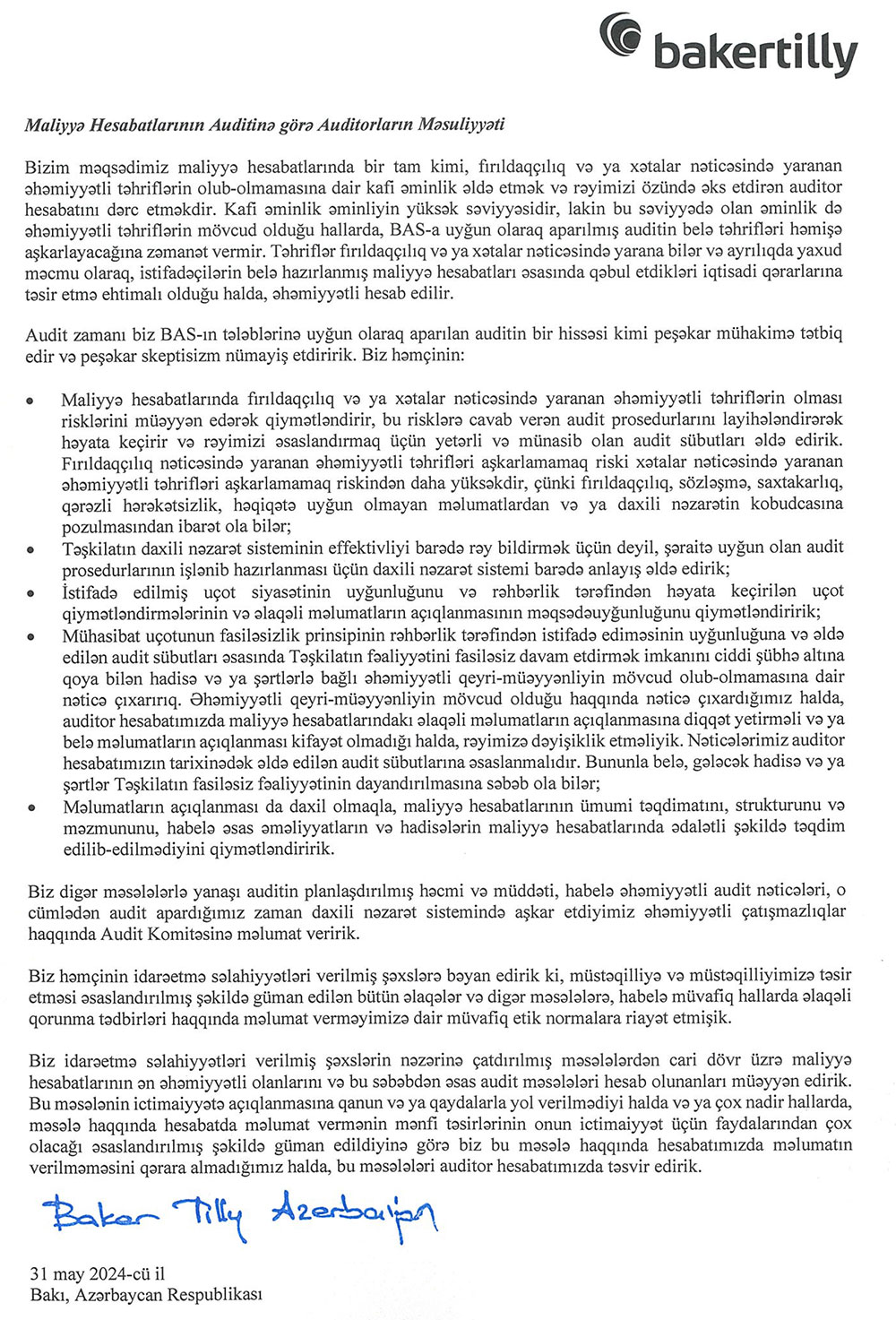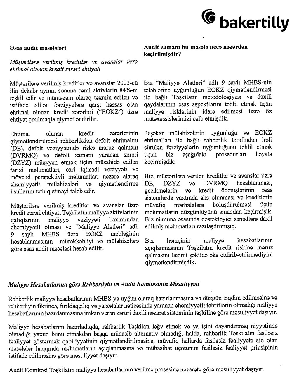 BOKT “İnternational” ASC-nin kənar audit şirkəti tərəfindən təsdiqlənmiş 2023-cü il üzrə maliyyə hesabatını açıqlayıb. Hesabat Mühasibat uçotunun "Mühasibat uçotu haqqında" Azərbaycanın "Mühasibat uçotu haqqında" Qanununun, Maliyyə Hesabatlarının Beynəlxalq Standartlarının (MHBS) tələbləri çərçivəsində tamlığı, aidiyyəti maliyyə hesabatlarının hazırlanması və bu hesbatların MHBS-yə uyğunluğuna dair rəyin verilməsi beynəlxalq audit şirkəti “Baker Tilly Azerbaijan” tərəfindən təsdiqlənib.