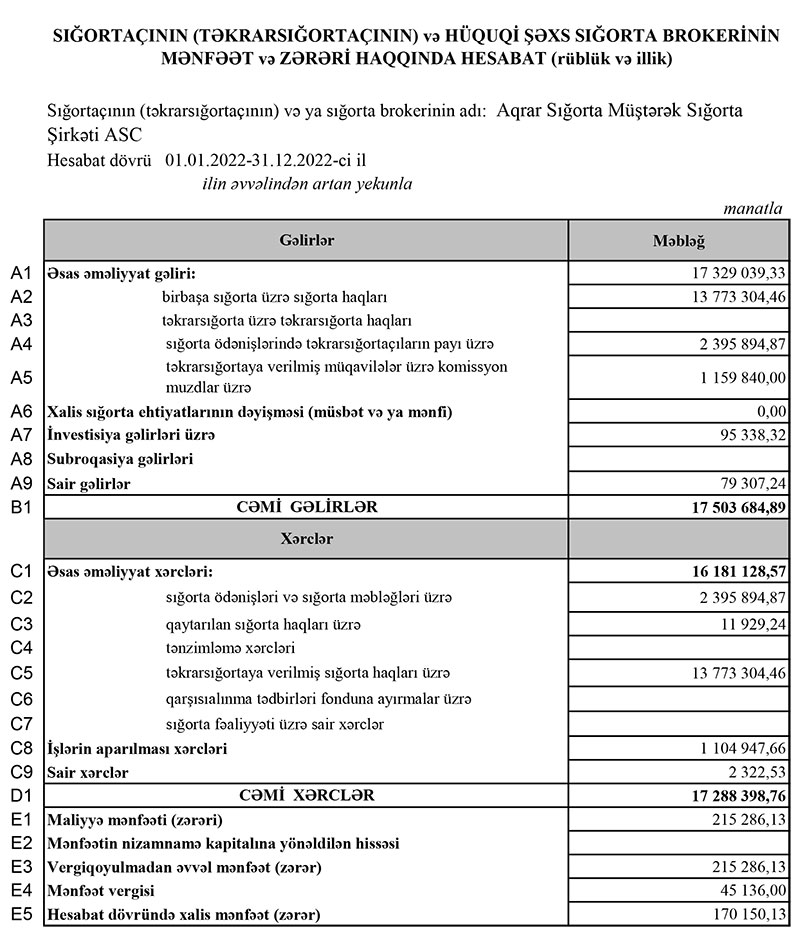 “Aqrar Sığorta Müştərək Sığorta Şirkəti”nin xalis mənfəəti azalıb