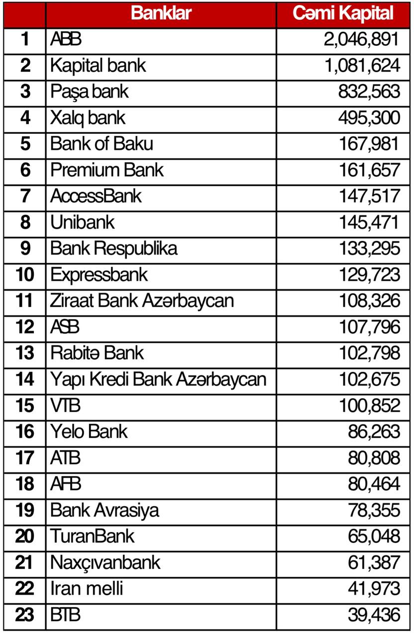 Audit olunmuş maliyyə hesabatlarına görə, ən çox xalis mənfəət əldə etmiş 5 bank - ABB, Kapital Bank, PAŞA Bank, Xalq Bank və AccessBank-dır.
