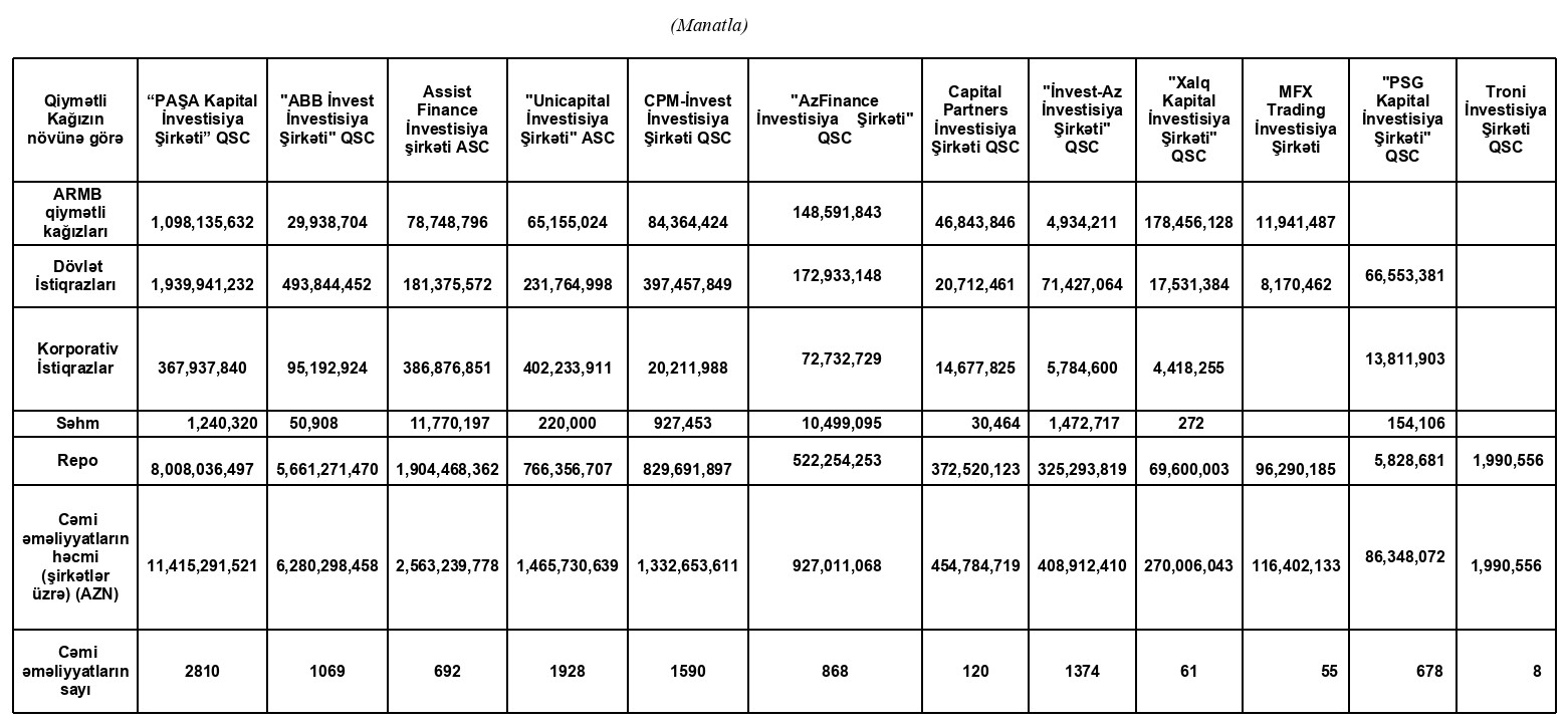 Azərbaycanın investisiya şirkətlərinin dövriyyələri açıqlandı