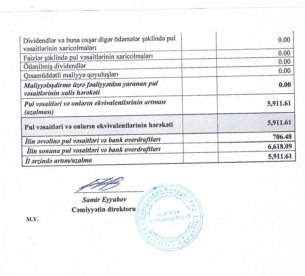 "Alatava-Avtonəqliyyat" QSC maliyyə göstıricilərini açıqladı