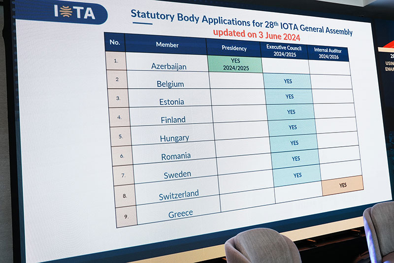 Baş Assambleyanın inzibati sessiyasında 2024-2025-ci illər üzrə IOTA-nın prezidenti vəzifəsinə Azərbaycan Respublikası İqtisadiyyat Nazirliyi yanında Dövlət Vergi Xidmətinin (DVX) rəisi Orxan Nəzərli seçilib. Sessiya çərçivəsində 2024-2025-ci illər üzrə IOTA İcraiyyə Şurasının üzvləri də seçilib. İcraiyyə Şurasında Belçika, Estoniya, Finlandiya, Macarıstan, Rumıniya, İsveçrə və İsveç təmsil olunacaq. Qurumun prezidentliyini həyata keçirən Azərbaycan DVX İcraiyyə Şurasına sədrlik edəcək.