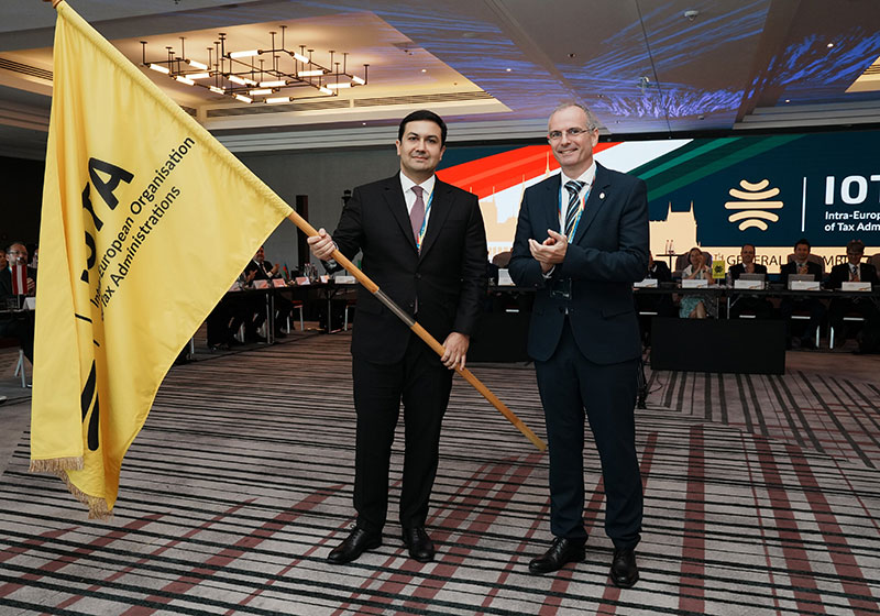 Daha sonra IOTA prezidentliyinin rəmzi hesab edilən təşkilatın bayrağı Macarıstanın Milli Vergi və Gömrük Administrasiyasının sədri Ferens Vaguyheyli tərəfindən Azərbaycanın Dövlət Vergi Xidmətinin rəisi Orxan Nəzərliyə təqdim olunub.