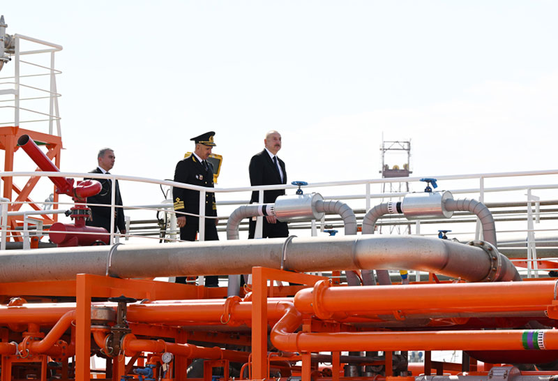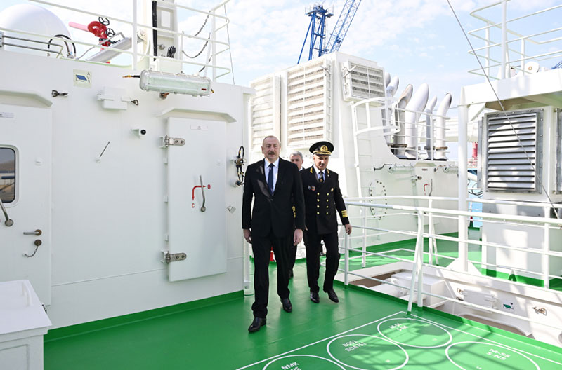 Sonra dövlətimizin başçısı tankerin istifadəyə verilməsini bildirən rəmzi lenti kəsib.