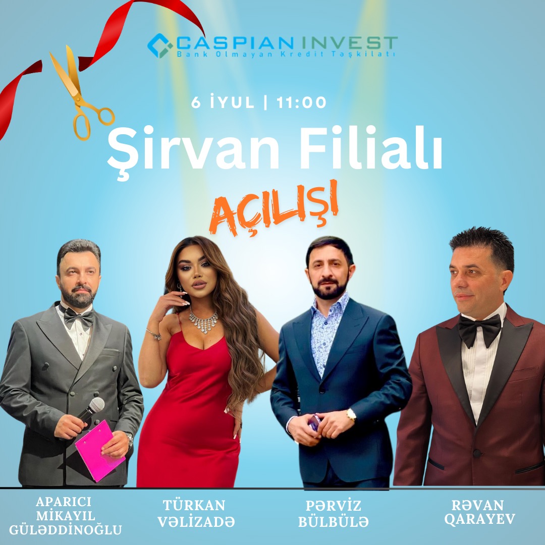 Marja.az xəbər verir ki, 06 İyul 2024-cü il tarixində "Caspian İnvest"in Şirvan şəhərində filialı açıqlacaqdır.