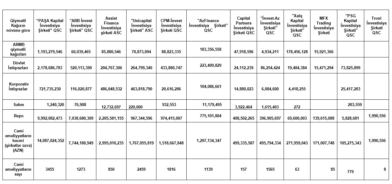 İnvestisiya şirkətlərinin dövriyyələri açıqlandı